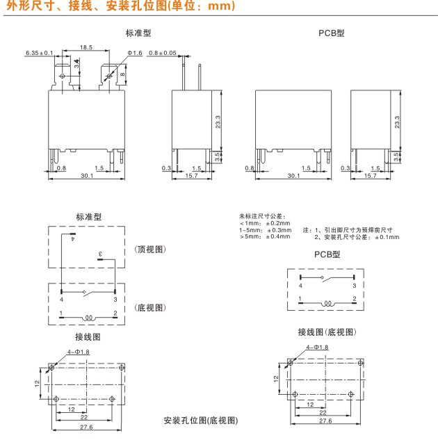 一般繼電器的外形尺寸都有一定的公差,因此在設計電路和安裝間隙時,推薦按說明書中規定的最大尺寸進行設計。
