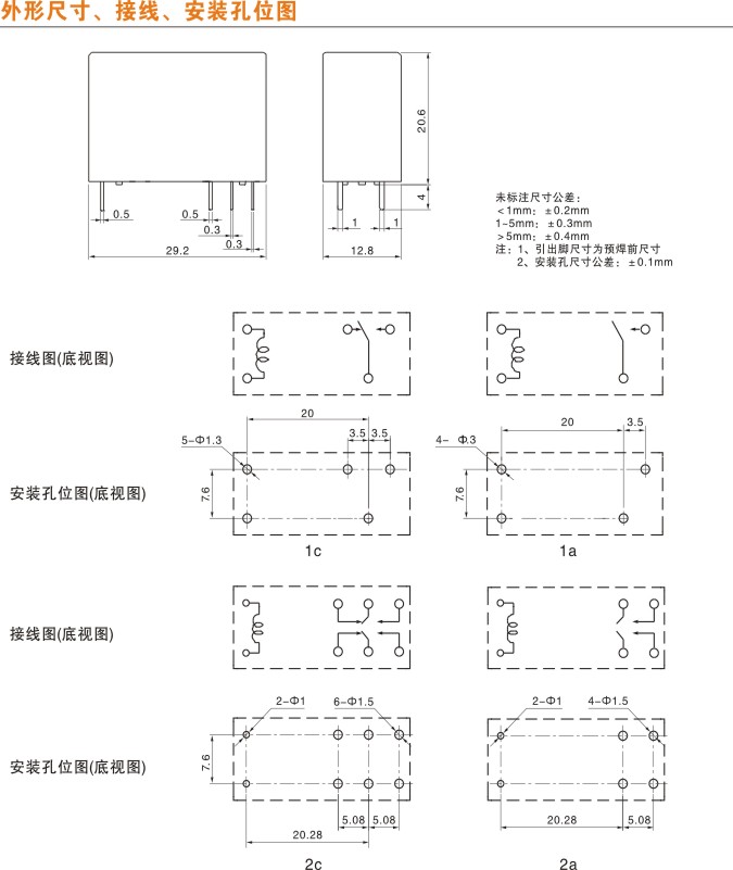 一般繼電器的外形尺寸都有一定的公差,因此在設計電路和安裝間隙時,推薦按說明書中規定的最大尺寸進行設計。