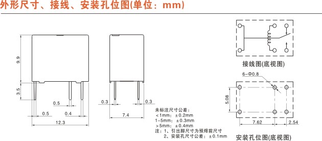 觸點形式繼電器常開或常閉(常見4、6只腳)、轉換(常見5只腳或8只腳)