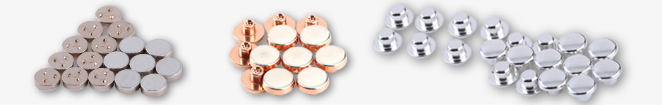 五金觸點部目前主要生產的有:銀觸點、三復合觸點、銅觸點、各種型號規格的端腳、簧片、銜鐵、軛鐵、觸 片、彈片。